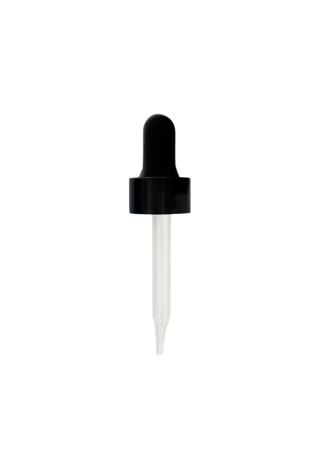 A sleek, non-CRC dropper designed for 1oz and 2oz Boston Round bottles. Features a smooth black closure, shiny black bulb, and straight-tip glass pipette for clean, precise dispensing—perfect for oils, serums, tinctures, and skincare blends.